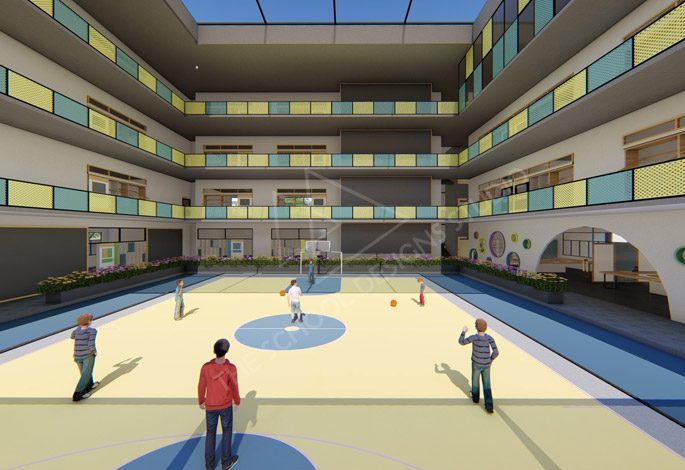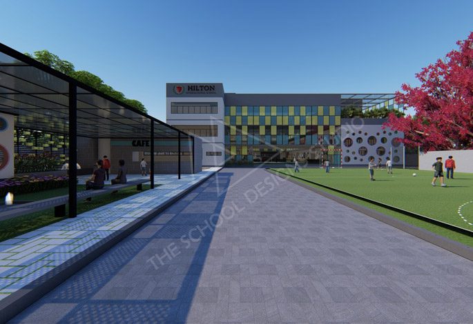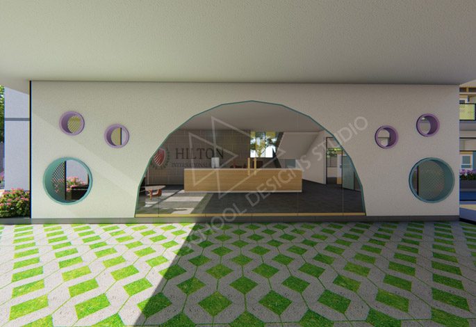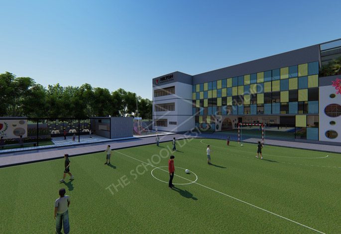 Located in Yelahanka Bengaluru, the Hilton International School is built as a sports integrated facility for children graduating from the existing pre-school. The construction of the project was undertaken by The School Designs Studio in a phase-wise manner, with cost-effectiveness being the key, done without compromise on the quality of construction and the facilities provided while utilising new methods of design and construction.