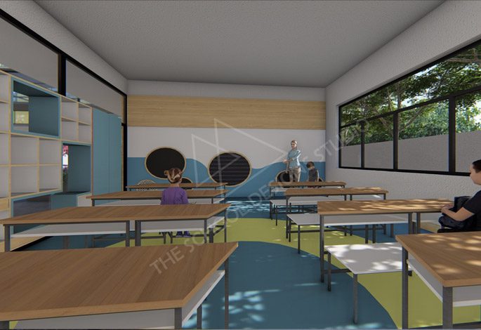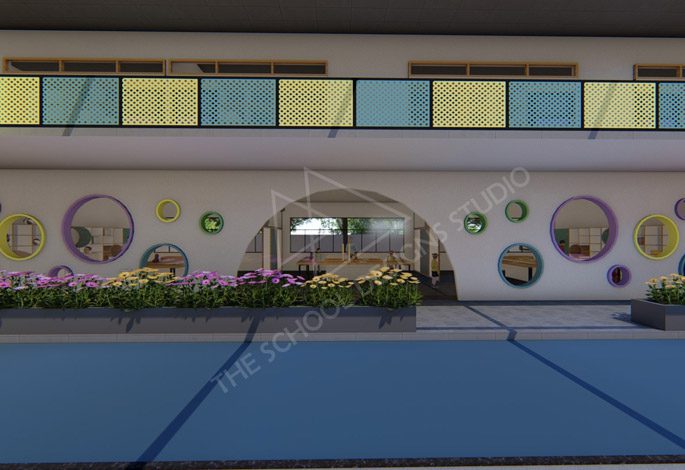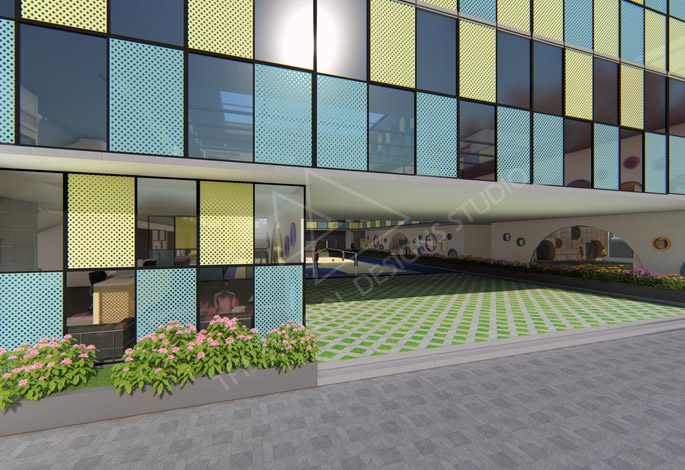 The school is built using the unique methodology of ‘Waffle Slab Construction’, which costs 30% less than that of a traditional building, is durable and of superior quality. Built in a short time, the construction helped save costs while optimising the use of materials and manpower. Set in a 1-acre area, the central school building is surrounded by three play zones – a professional 5A football field, a multipurpose play court and large activity area – all of which are built adhering to strict curriculum guidelines. Hosting 1000 kids, the school is well landscaped with plenty of greenery, open spaces and has a large well-stocked library for students.